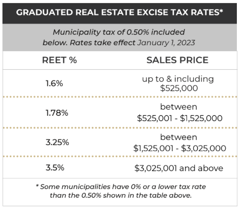 Excise tax: Paid when you sell property in Washington, starting at 1.6% of the sales price and going up from there in graduated tiers. The most updated rates are below.